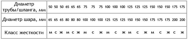 Диаметр шара Класс жёсткости Код
