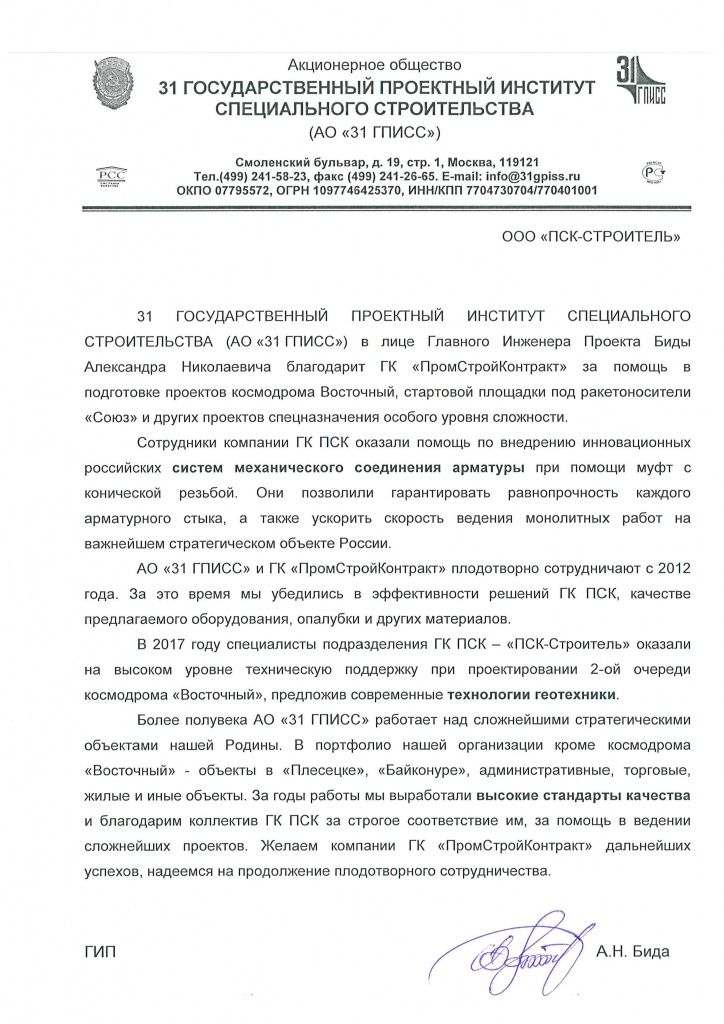 Данный уникальный объект - самый большой строящийся новый космодром в мире - космодром "Восточный", возведённый в Амурской области недалеко от города Углегорск - является гордостью ГК ПСК. Первый запуск ракет состоится в 2016-ом году, первый пилотируемый запуск назначен на 2018 год. Космодром предполагается использовать для решения перспективных задач космической деятельности России с использованием ракет-носителей среднего, тяжелого и сверхтяжелого классов. При строительстве космодрома в целях большой скорости строительство и надёжности всех монолитных конструкций, а также для существенной экономии арматуры применяются муфтовые соединения арматуры Erico Lenton и другие опалубочные технологии нашего холдинга. По итогам использования технологий на космодроме Восточный ГК ПСК компания получила специальную благодарность от проектировщиков строительства. Опалубка перекрытий ПСК-КАП Опалубка стеновая МСК, Дельта, ПСК-Классик Опалубка колонн (стандартных, круглых, высоких) Ламинированная фанера для опалубки Также при строительстве многих объектов космодрома и города-спутника "Циолковский" использовалась российская опалубка для стен и других форм PSK-DELTA, телескопические стойки для опалубки перекрытий и другие фирменные продукты ГК ПСК. Системы механического соединения арматуры от компании ГК ПСК